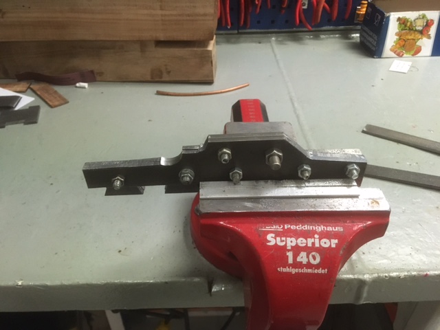 I didn't really use a buck for peening. I just clamped the side to be peened in the vice and then peened one tail at a time, moving the piece in the vice to get maximum support all the time.